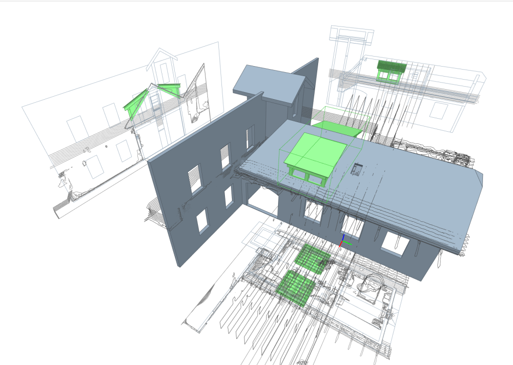 Auf Basis validierter Punktwolken (TLS, SLAM, Drohne, Photogrammetrie) erstellen wir maßhaltige Modelle für CAD und BIM. Dank unserem Verständnis für Bauprozesse und Planungslogik entstehen Daten, die technisch präzise und praxisgerecht nutzbar sind.