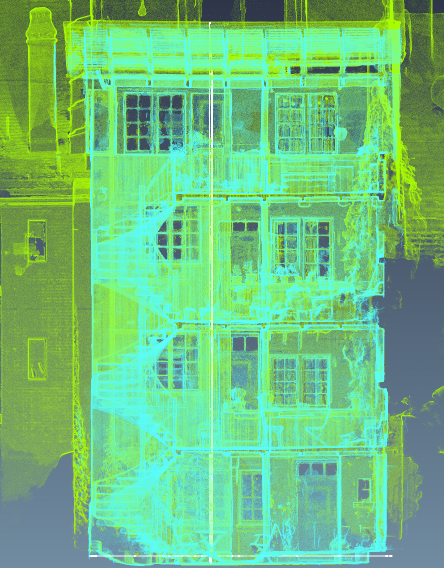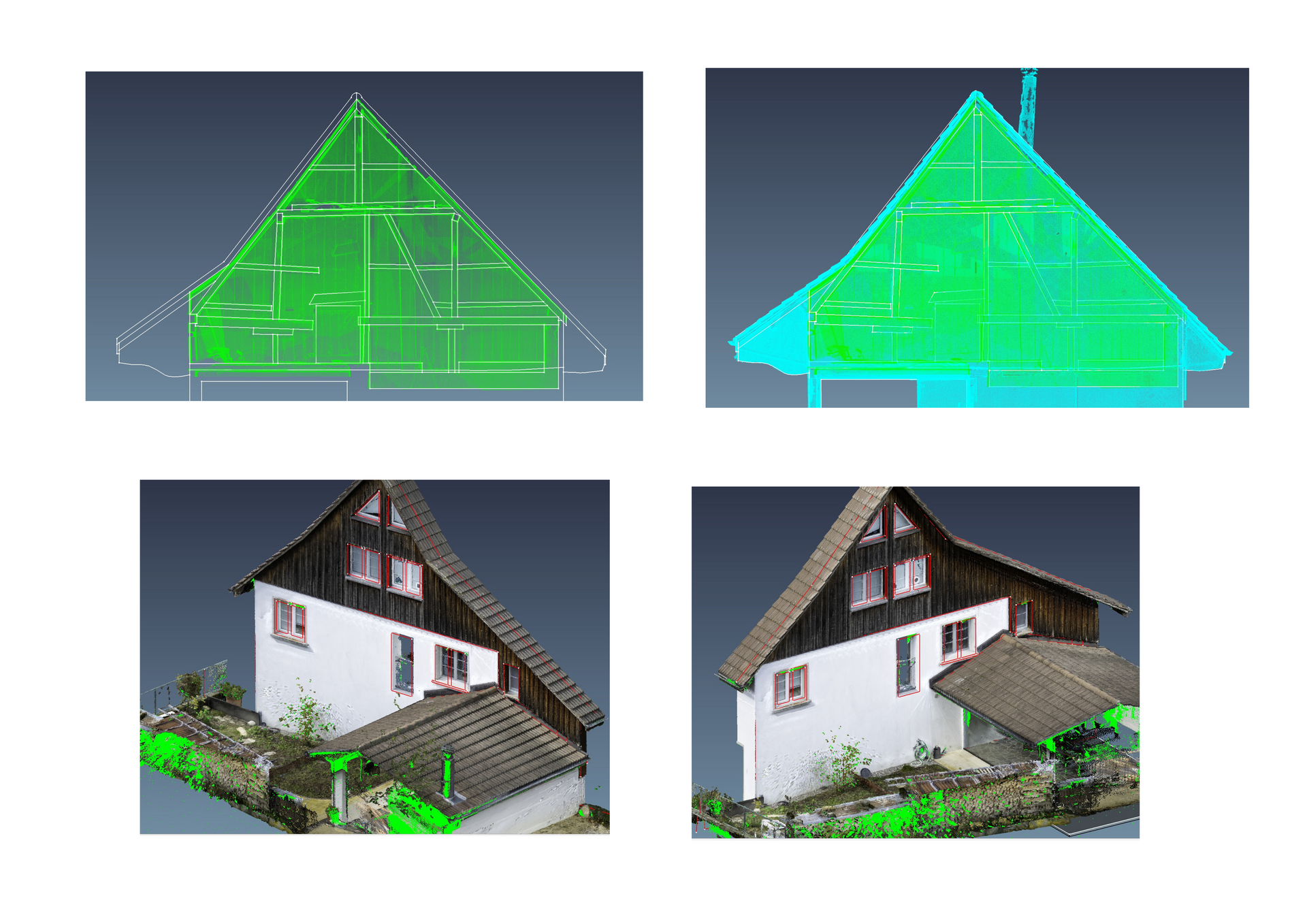 Gebäudehülle vollständig – auch verdeckte Details.