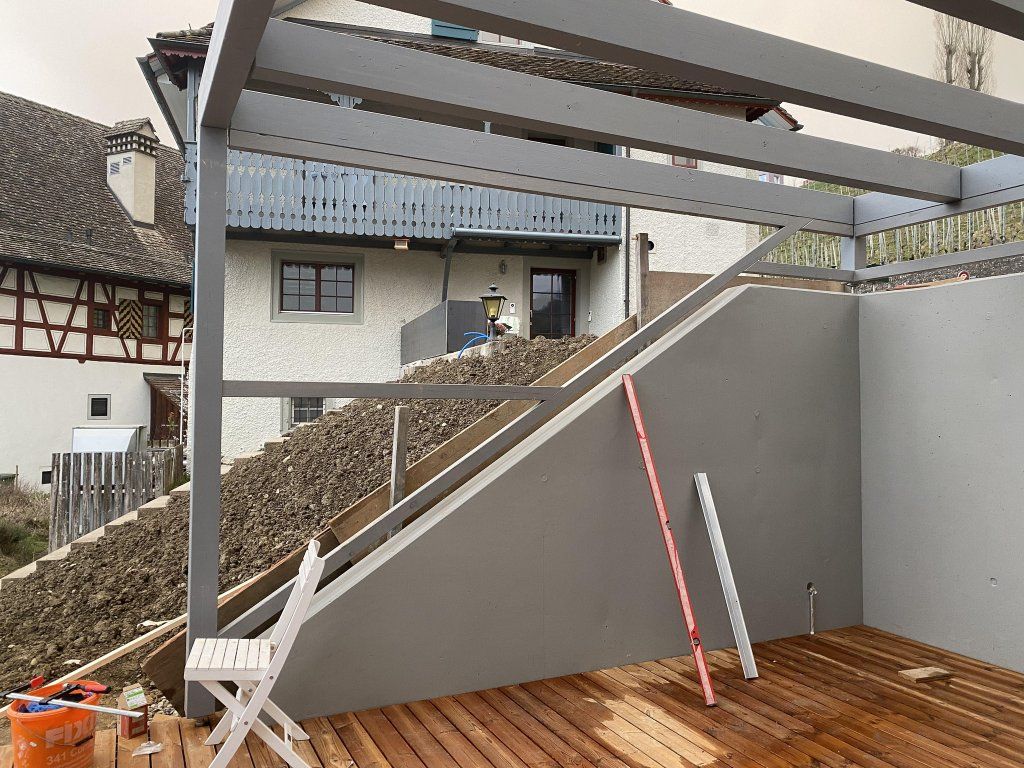 Verlegen eines neuen Balkonbelages, erstellen von Geländern und Fassadenschaalung.