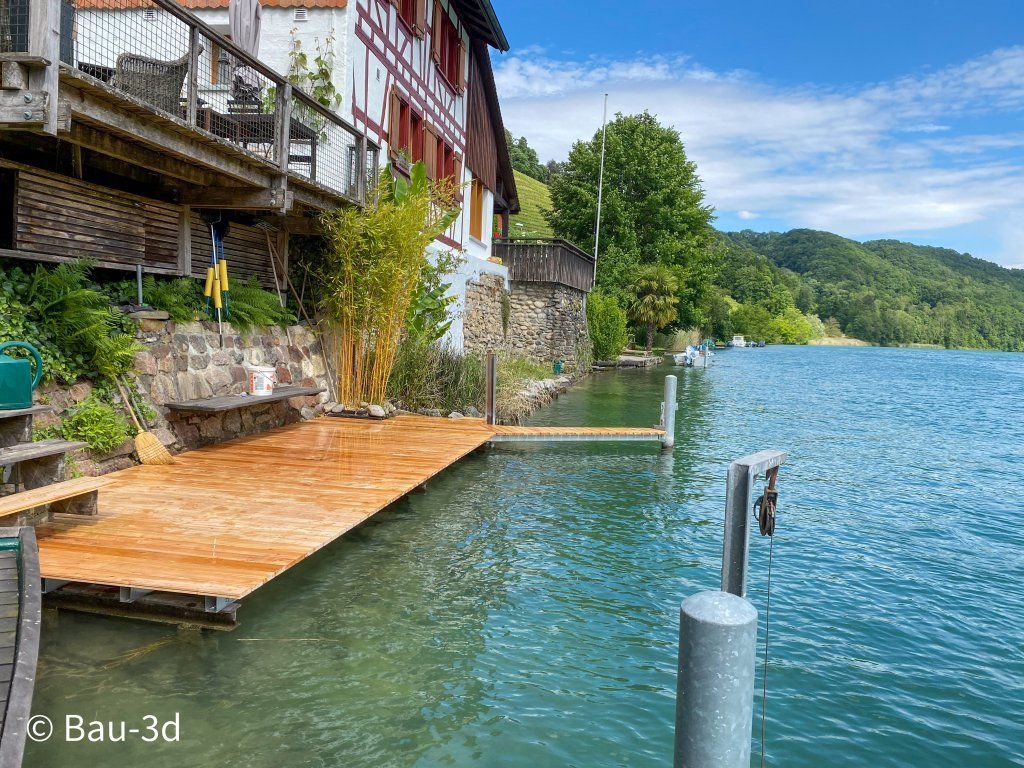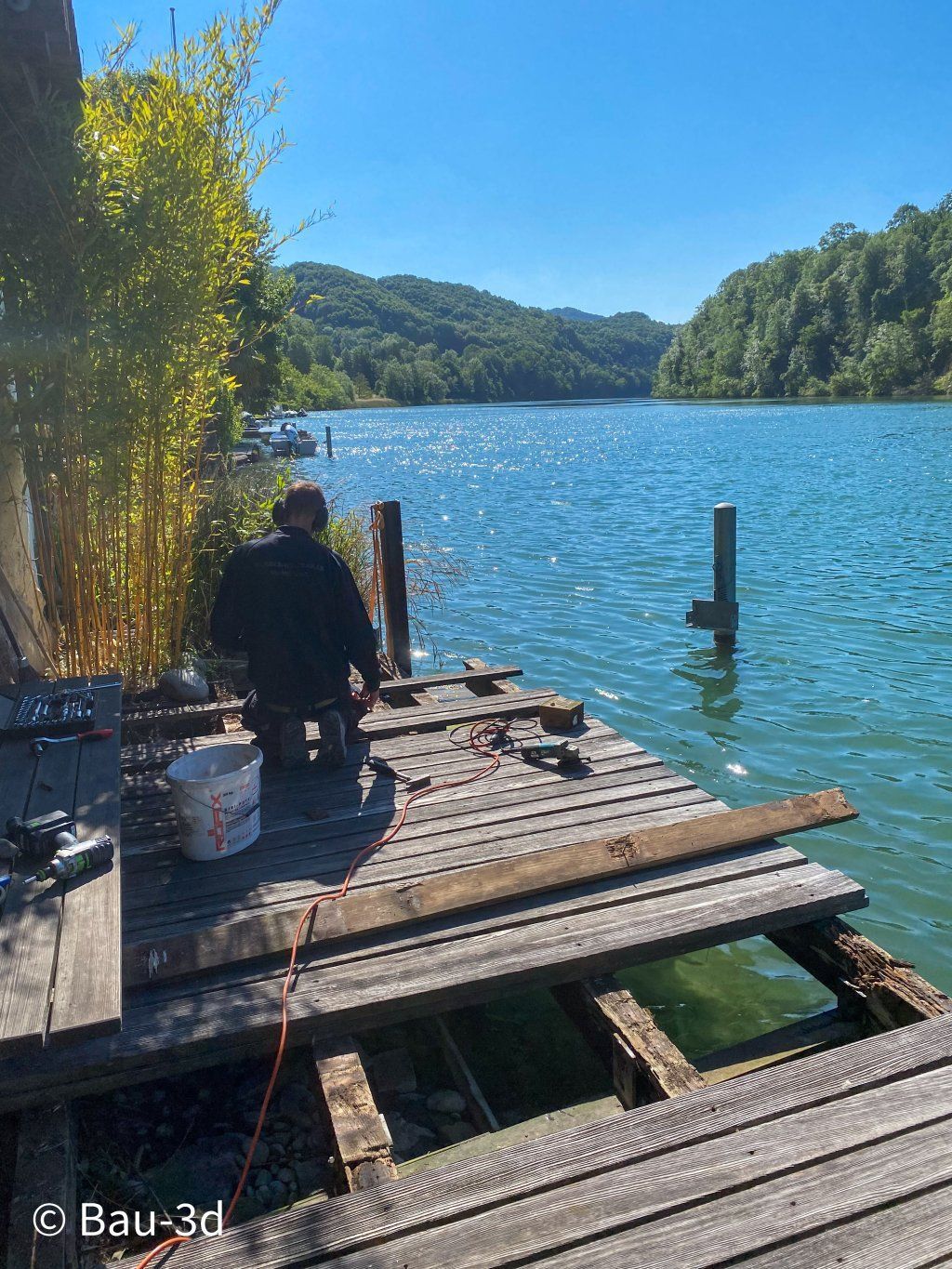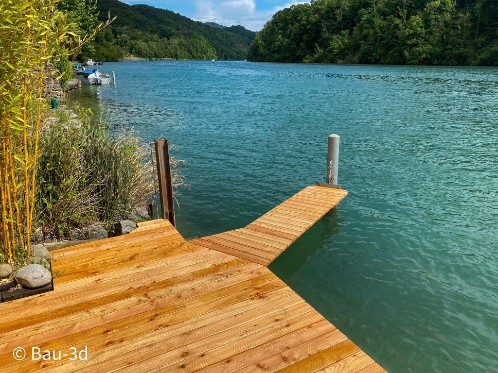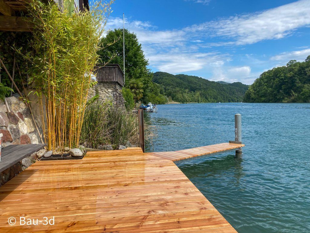 Bootsanlegeplatz am Rhein dessen Belag ersetzt wurde und ein Steg ergänzt