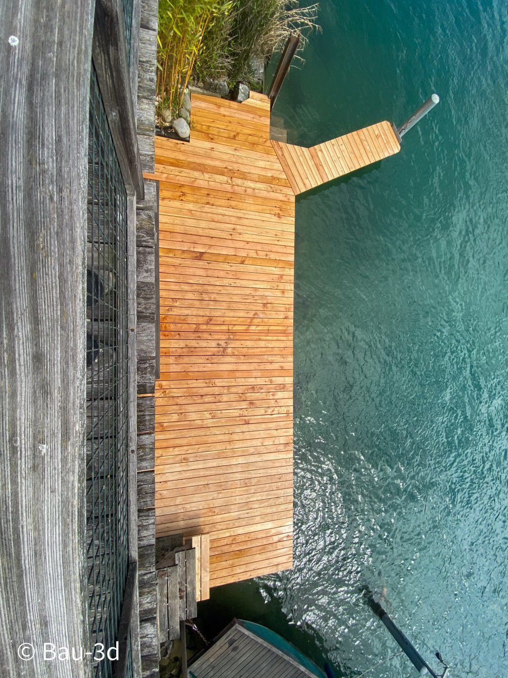 Zudem führen wir mit unserem Partnerbetrieb AF Bau GmbH Holzbauarbeiten diverser Art aus. Besonders Alholzreperaturen und kleine Anbauten, Fassaden, Bootsstege und Terrassendecks.
